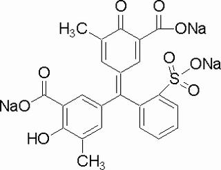 其他英文名稱 : 5-[α-(3-carboxy-5-methyl-4-oxo-2, 5-cyclohexadien-1-ylidene)-2-sulfobenzyl]-3-methylsalicylic acid,Eriochrome cyanine;Chromoxane cyanine R;Cyanine R;Chrome cyanine R;Solochrome cyanine R;C.I. 43820