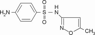其他中文名稱:磺胺甲噁唑;磺胺甲基異惡唑;磺胺甲基異噁唑;新明磺;新諾明;3-對氨基苯磺酰胺基-5-甲基惡唑;4-氨基-N-(5-甲基-3-異惡唑基)苯磺酰胺