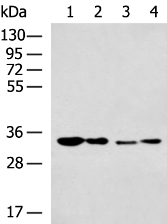 Mouse testis tissue, Hela cell, TM4 cell, HepG2 cell lysates |