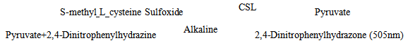 半胱酰胺亞砜裂解酶可以催化S-甲基-L-半胱氨酸亞砜生成丙酮酸。丙酮酸可與2,4-二硝基苯肼反應(yīng)生成2,4-二硝基苯腙,在堿性條件下顯棕紅色;測(cè)定505nm吸光度的變化,即可計(jì)算CSL酶活性。