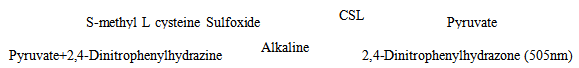 半胱酰胺亞砜裂解酶可以催化S-甲基-L-半胱氨酸亞砜生成丙酮酸。丙酮酸可與2,4-二硝基苯肼反應(yīng)生成2,4-二硝基苯腙,在堿性條件下顯棕紅色;測定505nm吸光度的變化,即可計算CSL酶活性。