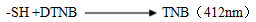 本試劑盒測定的是蛋白質中的游離巰基含量。一定條件下巰基會發(fā)生親核反應,即巰基與5,5’-二硫代-雙-硝基苯甲酸(DTNB)反應,生成黃色化合物,在 412nm處有最大吸收峰,據此可以計算蛋白質游離巰基含量。